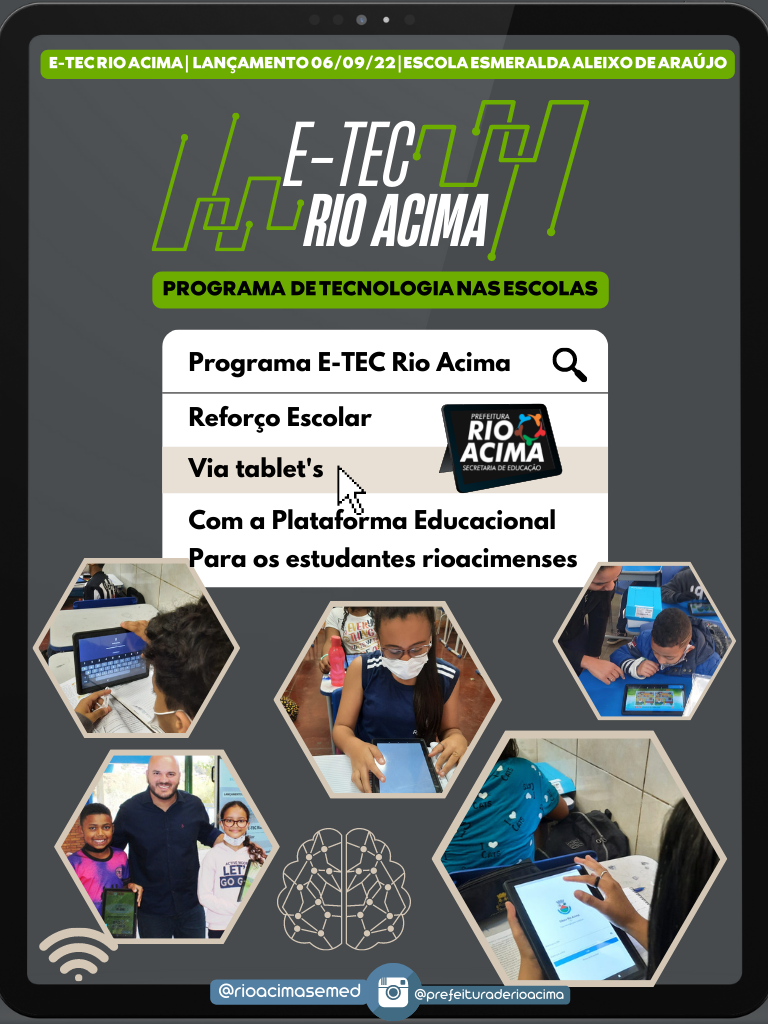 Dia 06 de Setembro de 2022. Lançamento do Programa E-TEC Rio Acima, na Escola Municipal Esmeralda Aleixo de Araújo, com a cessão de Tablet's, para os estudantes, nesta terça-feira, às ⏰10 horas para os alunos do ?️Segundo ano Margarida e ?️Quarto ano Violeta.