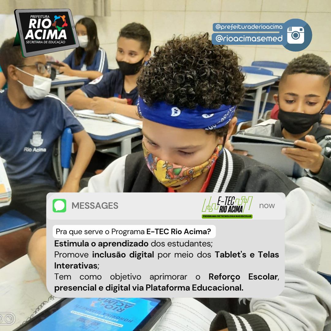 Oportunidade para todos estudantes rioacimenses que agora podem experimentar por meio da tecnologia, novos acessos à educação, conhecimento e empreendedorismo. Vale lembrar que a cessão dos tablets será feita para os alunos regularmente matriculados nas unidades escolares, tem também o critério da participação frequente nas aulas presenciais, junto ao compromisso de participar do Reforço Escolar e das atividades pedagógicas disponíveis na Plataforma Educacional.