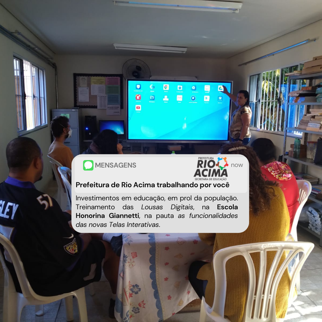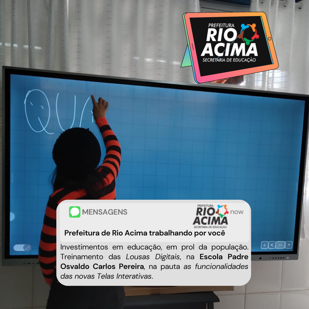 Rio Acima/MG - Uma série de investimentos em educação, nunca vistos na história rioacimense. Visando melhorar o aprendizado, além de inserir os alunos na Era Digital e da Informação, a gestão atual não mediu esforços para proporcionar uma nova realidade para atualizar a comunidade escolar de Rio Acima. A Prefeitura adquiriu uma Lousa Digital, também conhecida como Tela Interativa, para cada sala de aula do município.